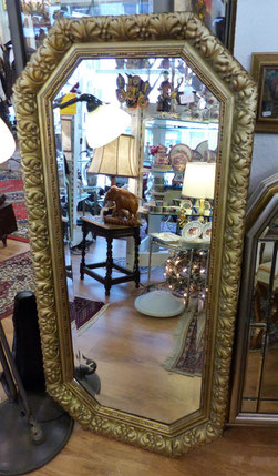 großer Spiegel, Facettenschliff, blattvergoldeter Holzrahmen